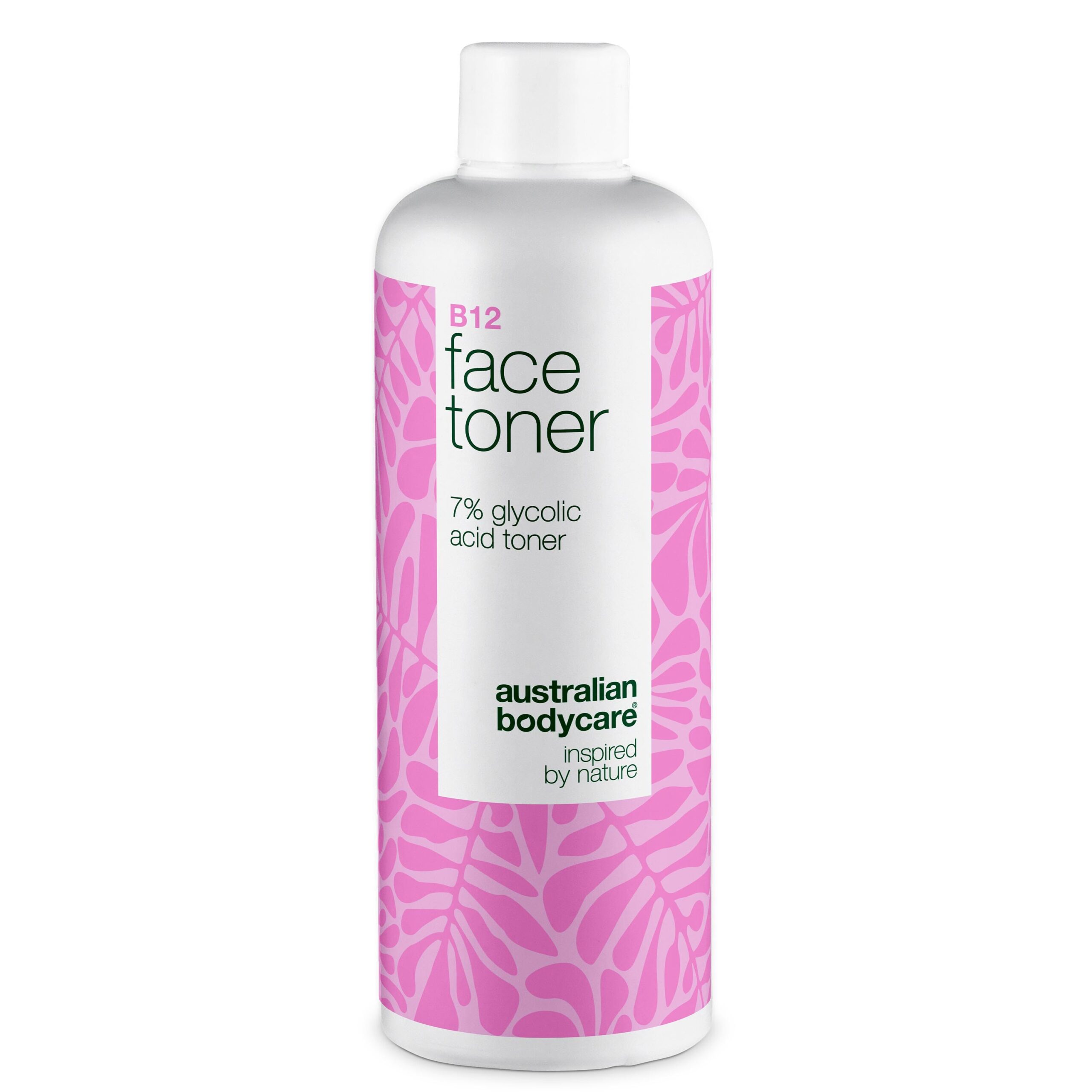 Ansigtstoner med B12 og 7% Glycolic Acid for jævn hudtone â Eksfolierende toner med B12 og 7% Glycolic Acid – fjerner døde hudceller, giver ny glød og fremmer en jævn hudtone. – 3 stk. – Australian Bodycare