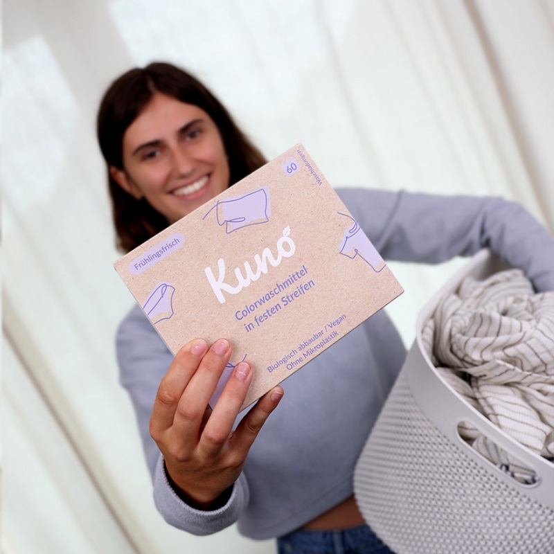 Kuno kulørtvaskemiddel indeholder 60 ark, som erstatter intet mindre end 4 kg konventionelt vaskemiddel, svarende til 60 vaske, godt for dig og godt for miljøet!