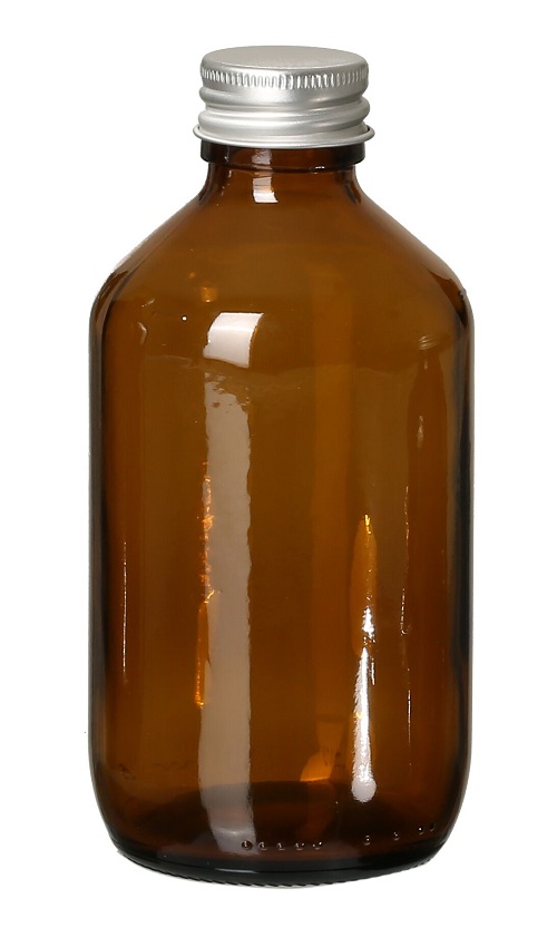 Brun glasflaske til fremstilling af din egen kosmetik DIY.