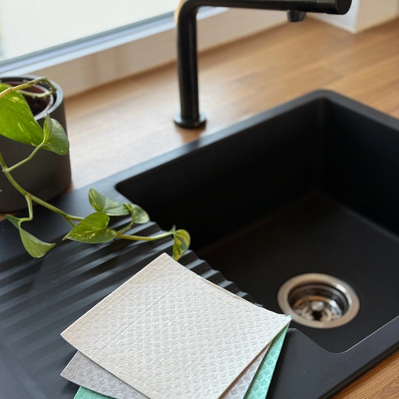 Gør rent med ren samvittighed med Pandoo vaskbare karklude, som er fremstillet af 70% cellulose og 30% bomuld, altså en 100% plastfri karklud til diverse rengøring af glatte overflader i både køkkenet og på badeværelset.