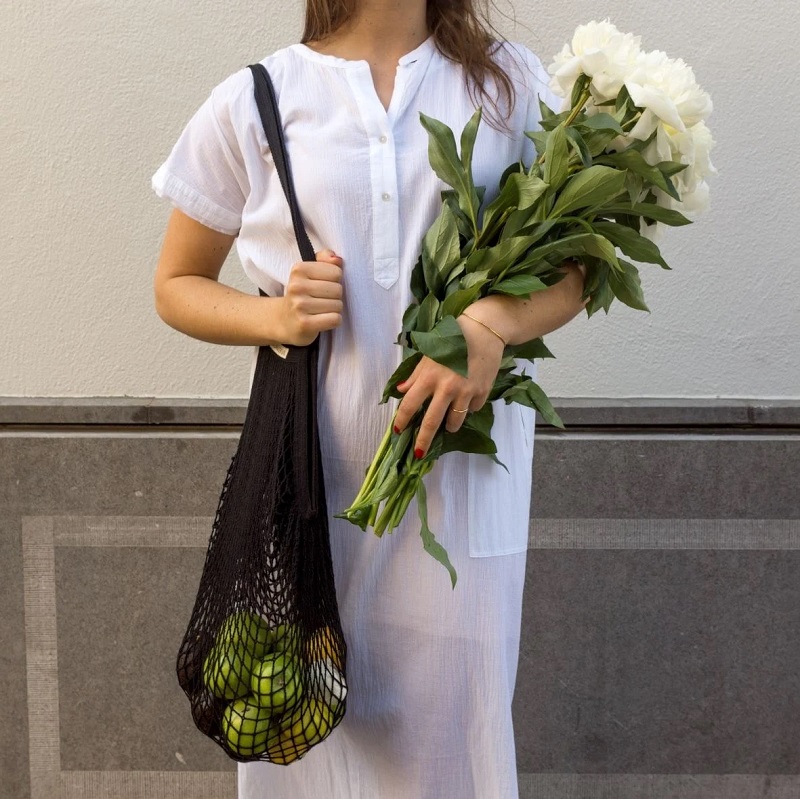 Indkøbsnettet er særdeles praktisk, fordi det nærmest ingenting fylder, når det er ru